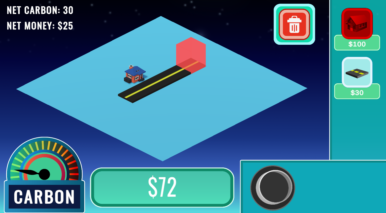 Right now, this project is in early development. The current version focuses mostly on base game-play. Future development will focus on a larger educational narrative where the player can explore more real-world solutions to CO₂ emmissions.